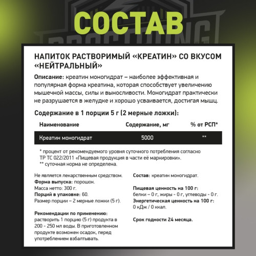 Креатин — одна из самых популярных спортивных добавок, которая помогает повысить силу, выносливость и эффективность тренировок. Он участвует в энергетическом обмене мышц, способствуя быстрому восполнению запасов энергии во время интенсивных нагрузок. Благодаря этому тренировки становятся продуктивнее, а восстановление после них проходит быстрее. Креатин подходит как опытным спортсменам, так и тем, кто только начинает заниматься спортом и хочет улучшить результаты. Регулярный прием в сочетании с правильным питанием и физической активностью помогает поддерживать мышечный тонус, увеличивать рабочие веса и сохранять высокий уровень энергии на протяжении всего дня.