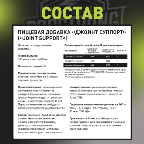 Комплекс глюкозамин + хондроитин + МСМ создан для комплексной поддержки суставов, связок и хрящевой ткани. Эти компоненты помогают поддерживать комфорт движений, способствуют сохранению эластичности суставов и снижают ощущение дискомфорта при активных нагрузках. Глюкозамин и хондроитин участвуют в питании и восстановлении хрящевой ткани, а МСМ является источником органической серы, важной для соединительных тканей. Формула особенно полезна людям с активным образом жизни, спортсменам и тем, кто заботится о здоровье опорно-двигательной системы. Удобный формат приема позволяет легко включить комплекс в ежедневный рацион и поддерживать подвижность и комфорт каждый день.